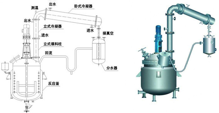 1.反應(yīng)鍋  2.豎式分餾柱  3.豎式冷凝器  4.臥式冷凝器