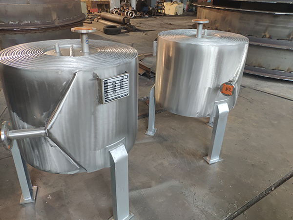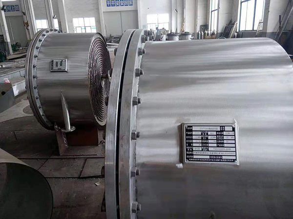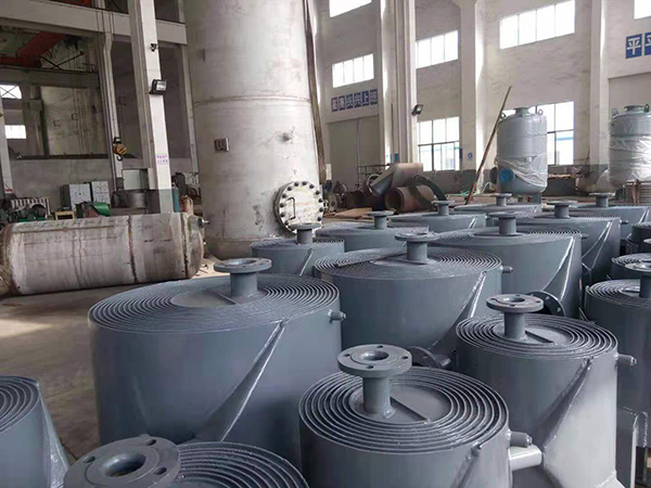 2、在殼體上的接管采用切向結(jié)構(gòu),局部阻力小,由于螺旋通道的曲率是均勻的,液體在設(shè)備內(nèi)流動(dòng)沒有大的轉(zhuǎn)向,總的阻力小,因而可提高設(shè)計(jì)流速使之具備較高的傳熱能力。